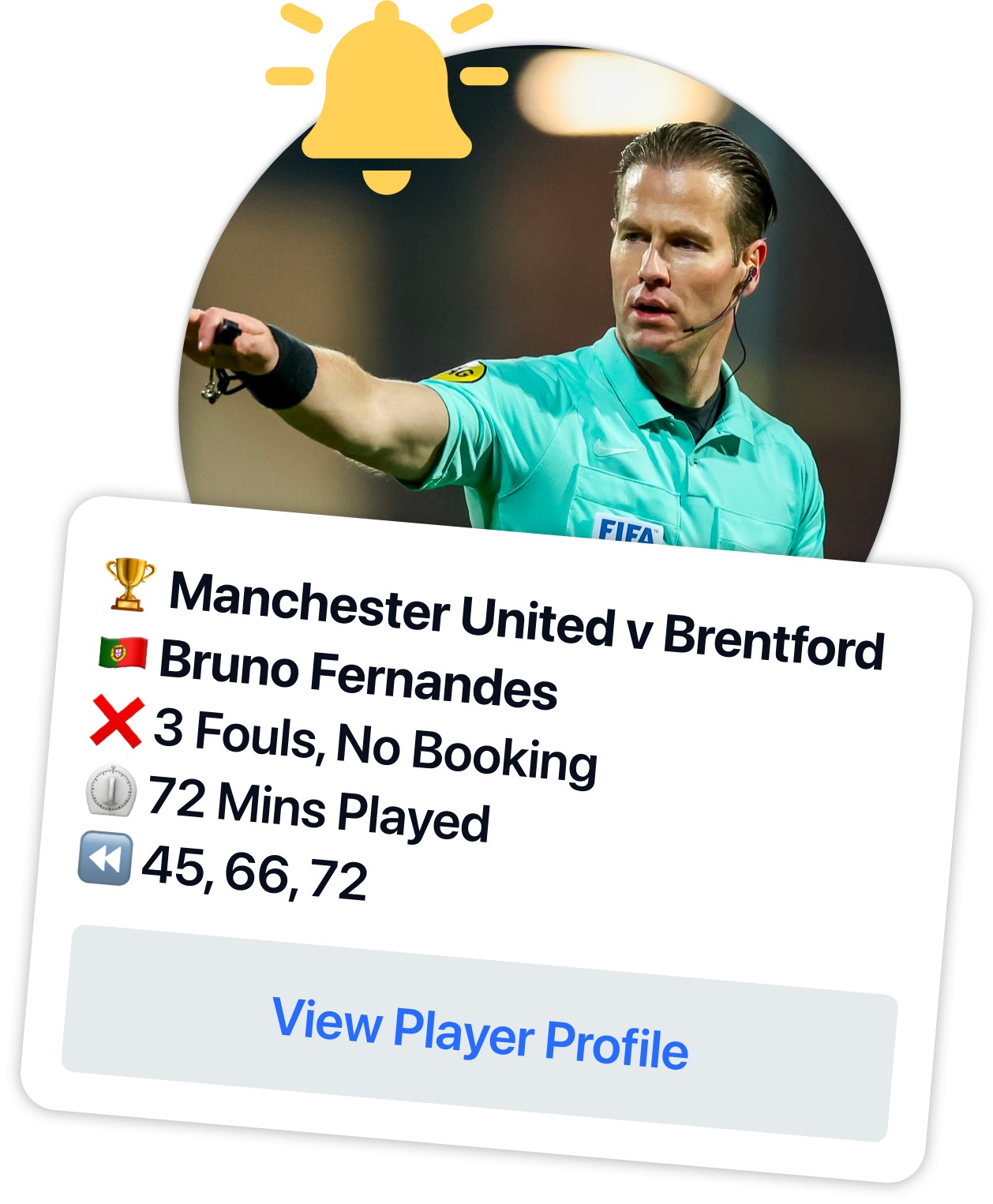 Do you bet on player bookings? Let the opportunity find you. It's impossible for you to be across many games at once. OddAlerts is here to help, sending you fully automated notifications when a player has committed a number of fouls without a booking.